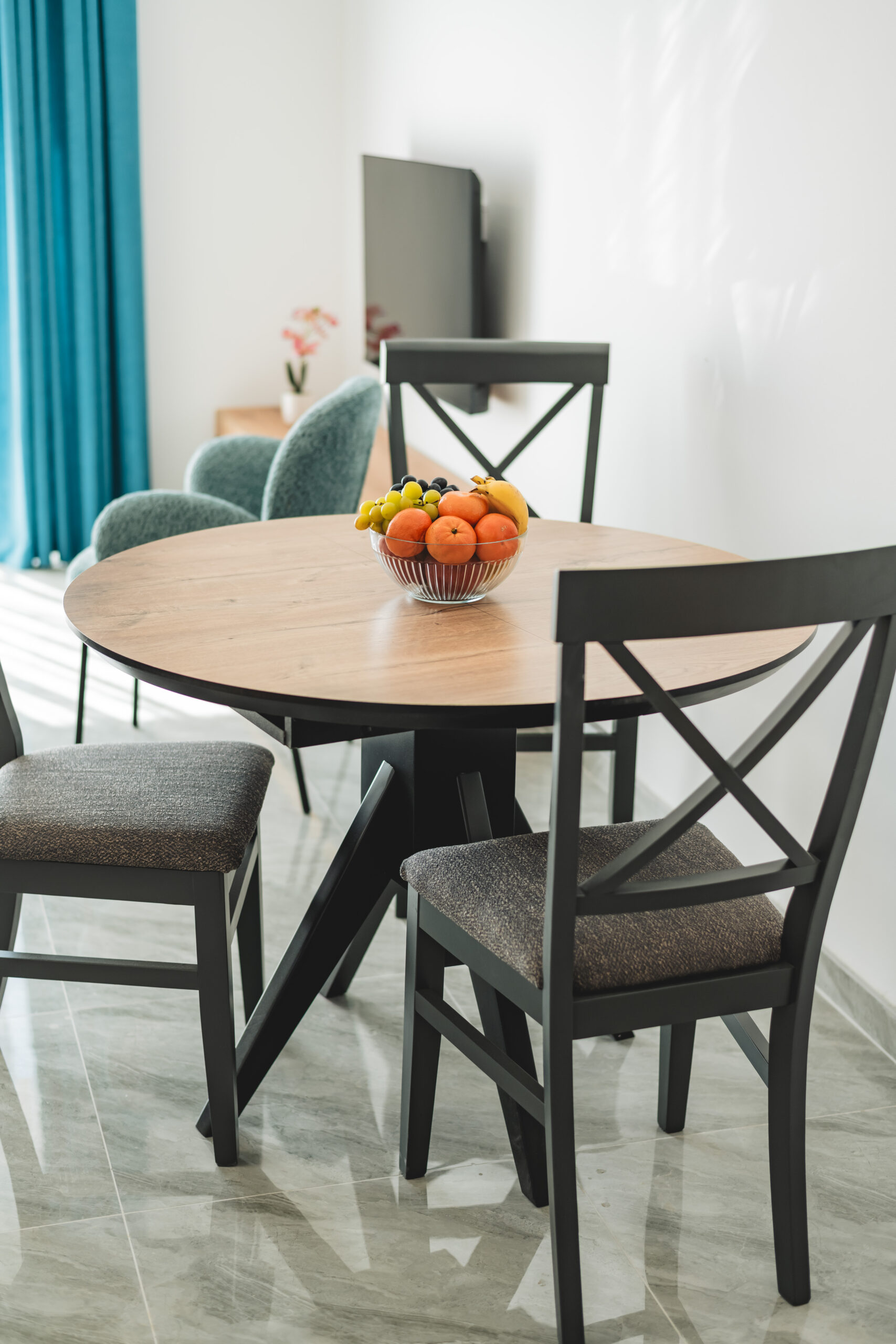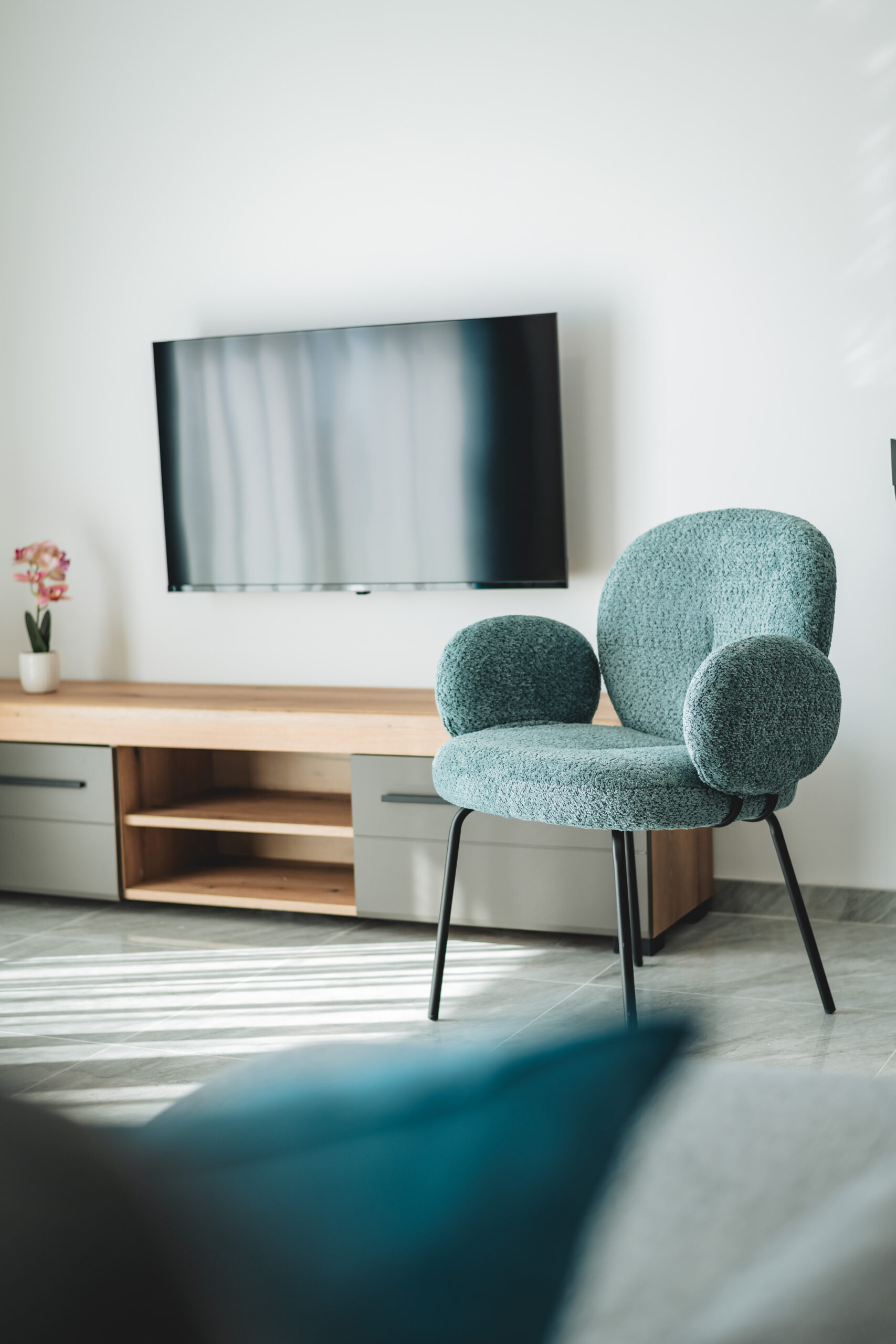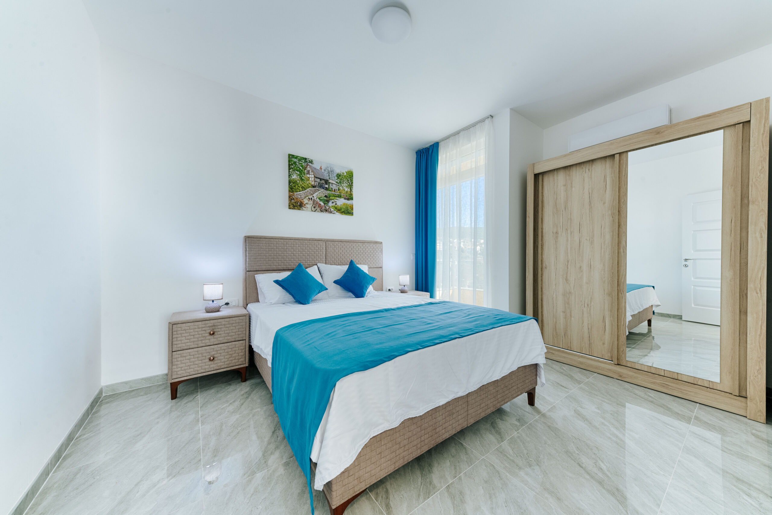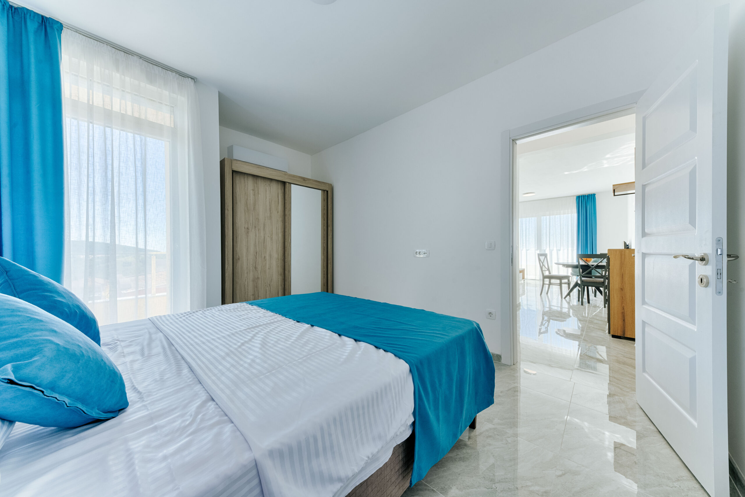 AP14 – Apartament z jedną sypialnią i salonem – max 5 osób zlokalizowany na piętrze trzecim. Apartament posiada balkon z meblami i widokiem na morze.