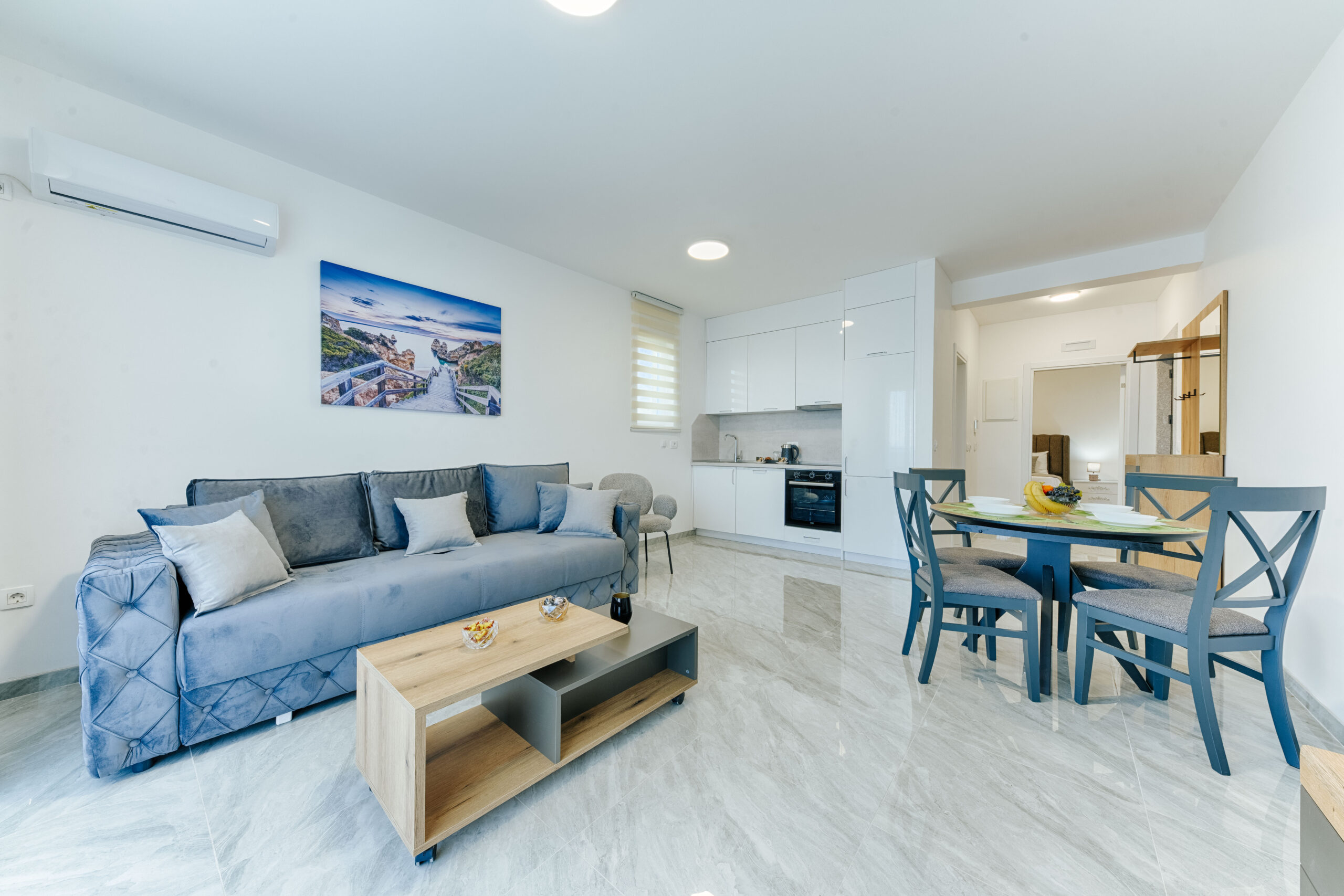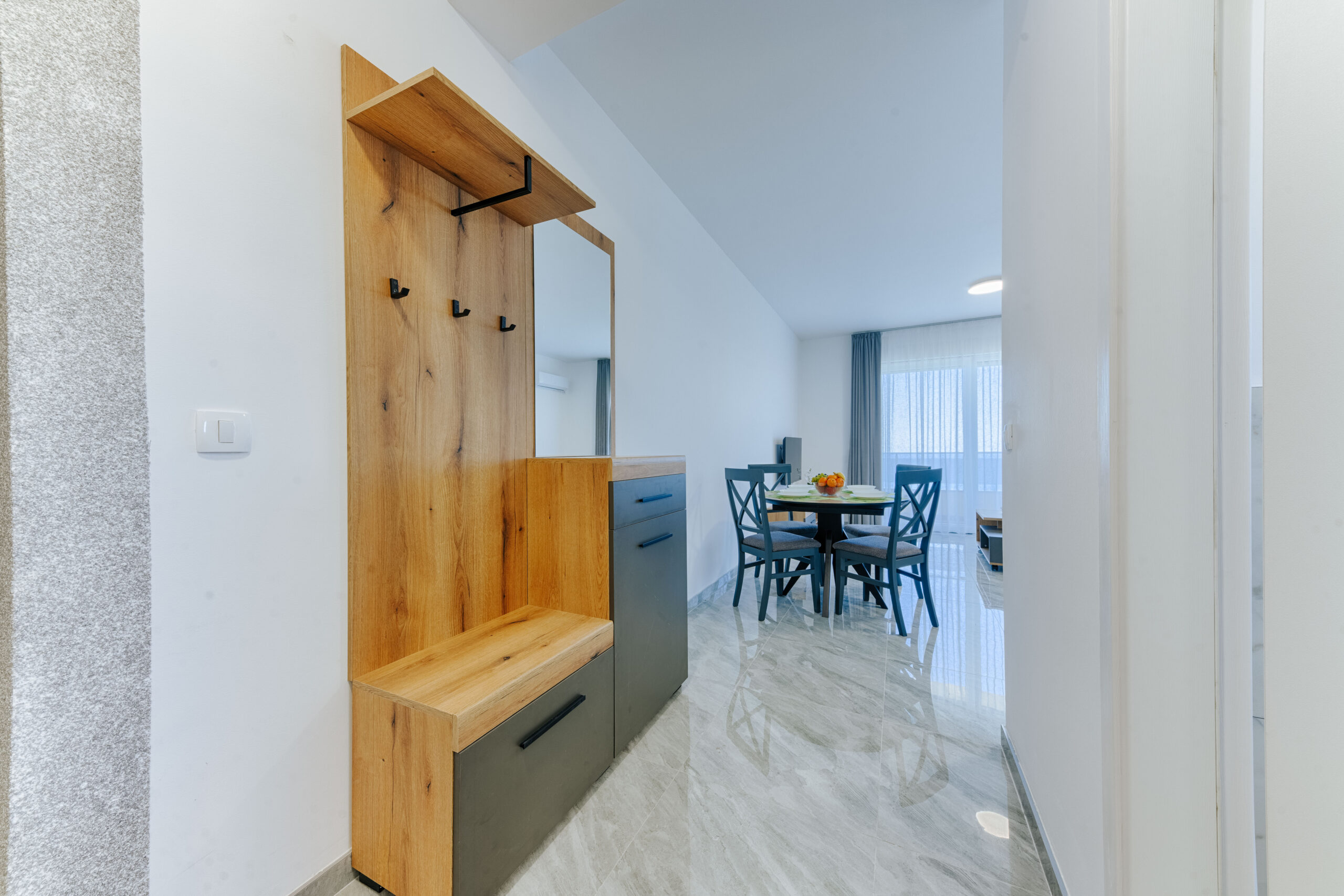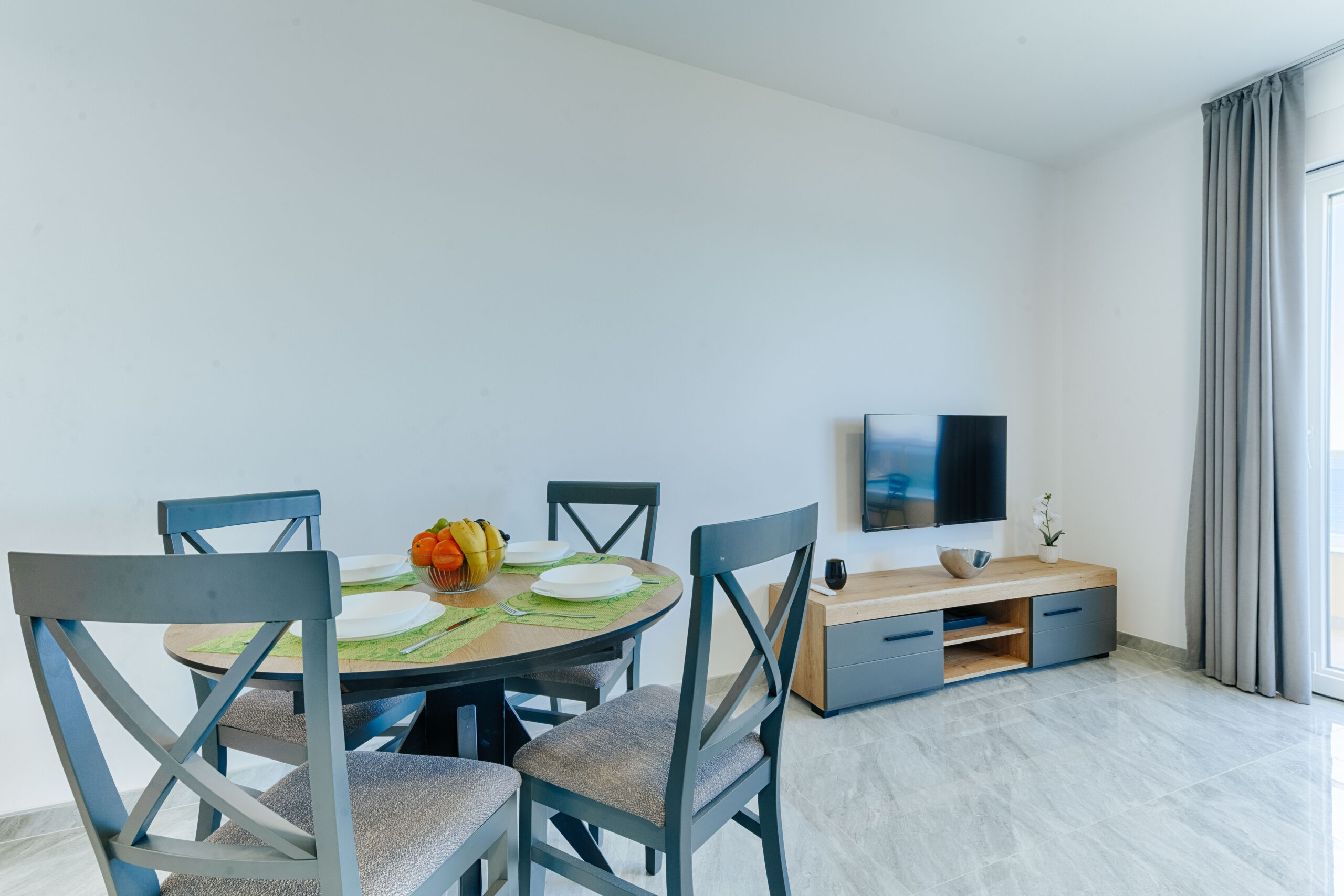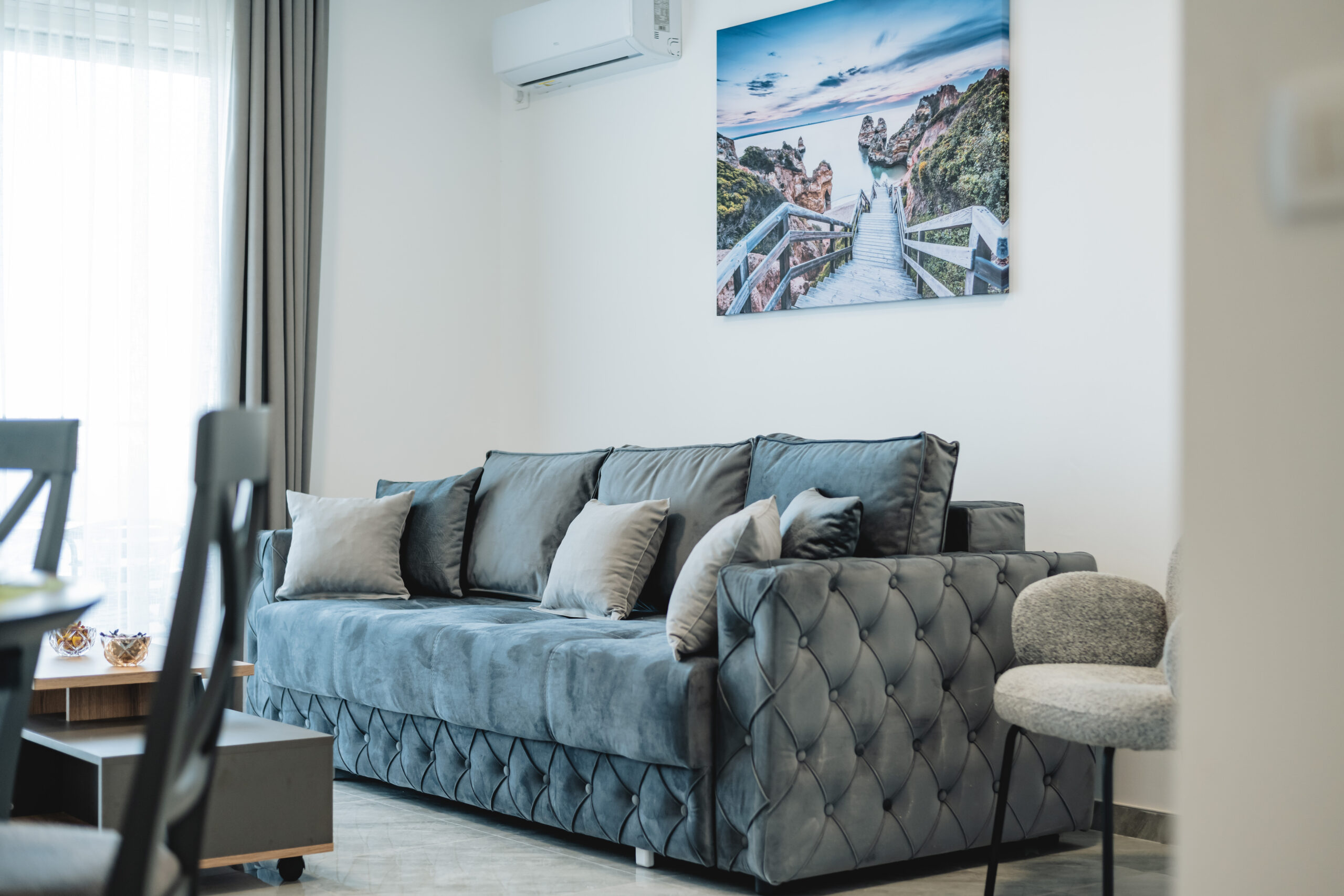 AP19 – Apartament z jedną sypialnią i salonem – max 5 osób zlokalizowany na piętrze czwartym. Apartament posiada balkon z meblami i widokiem na morze.