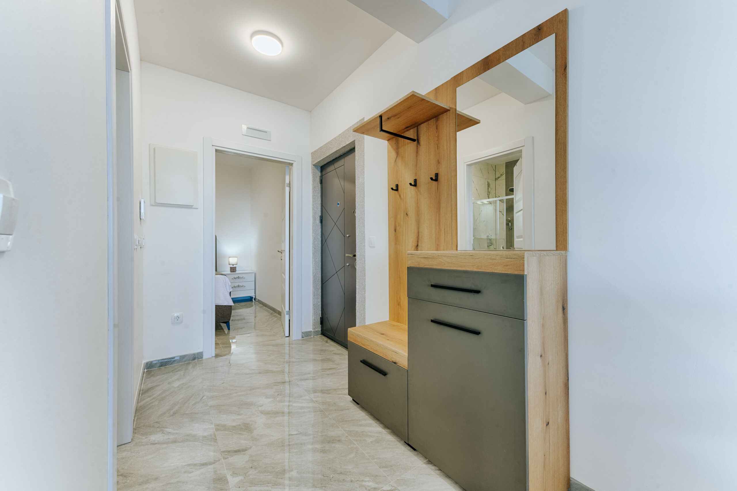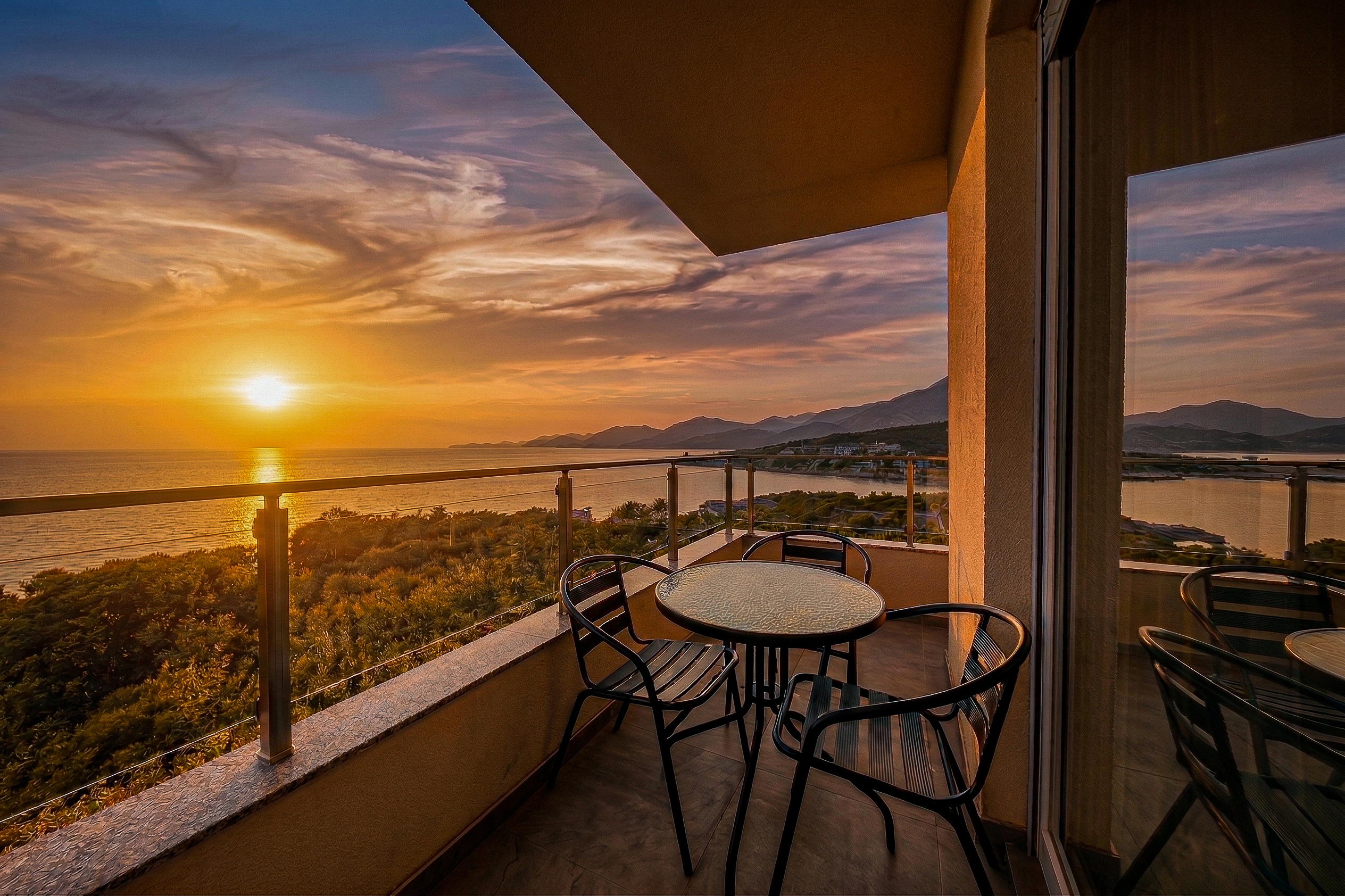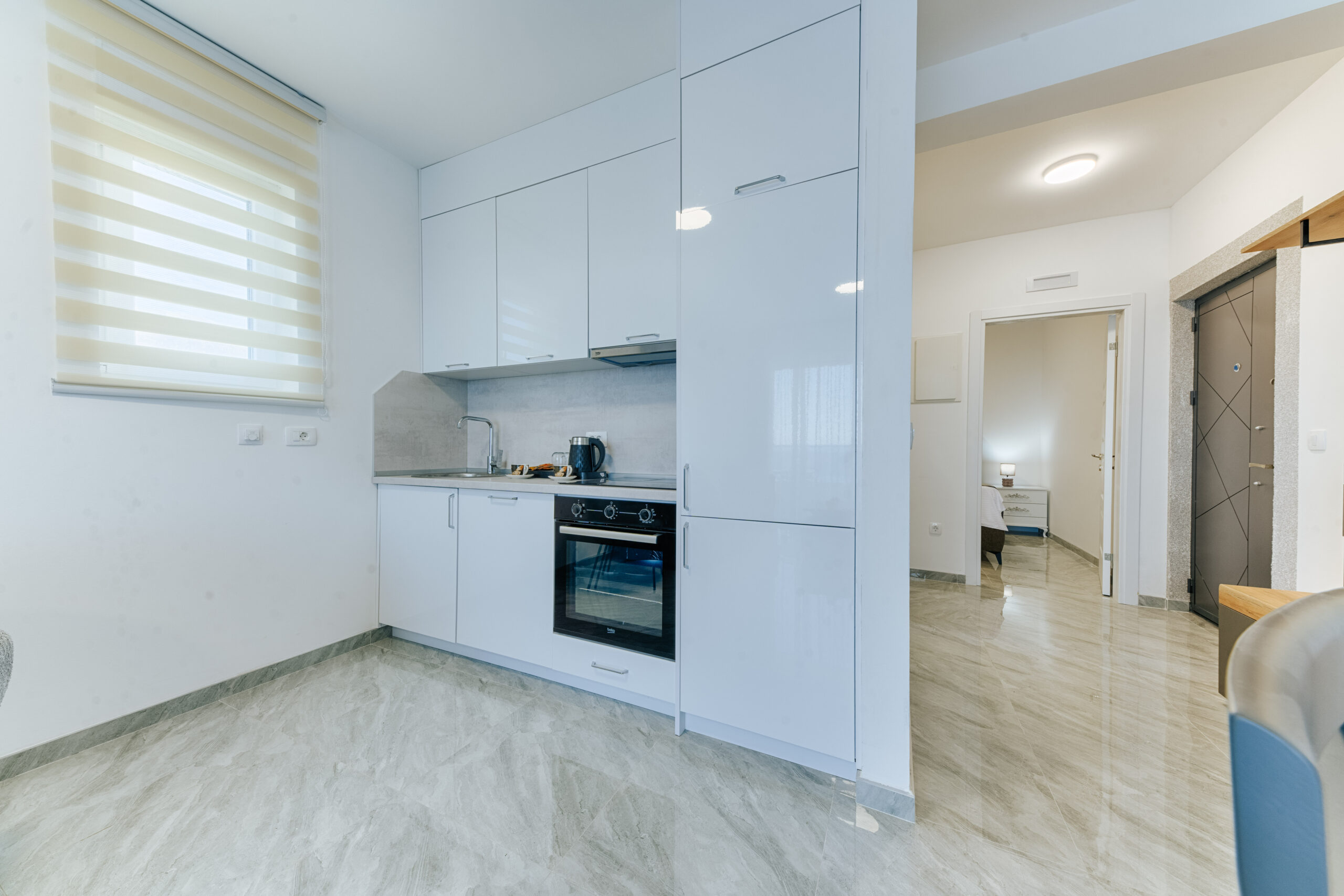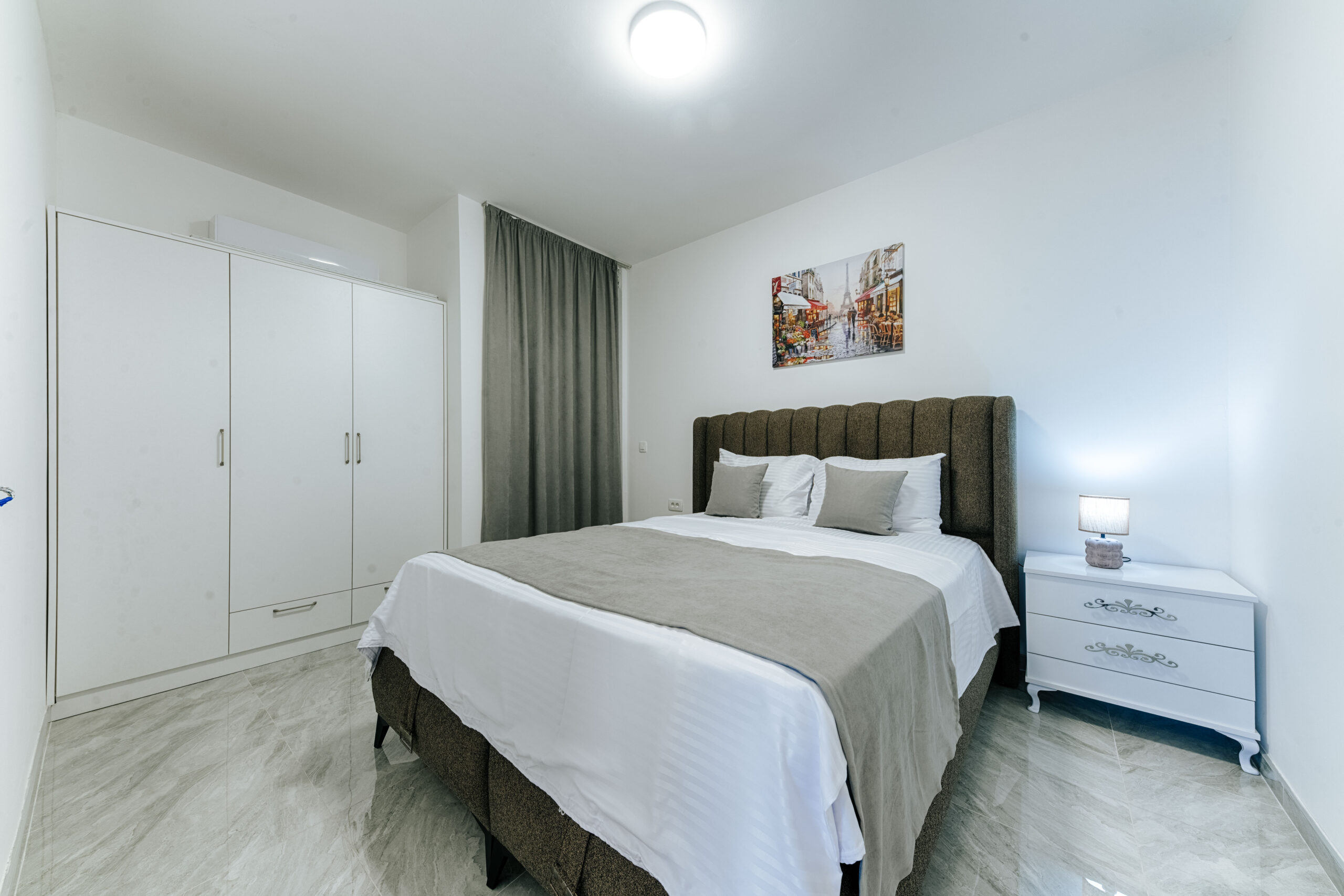 AP19 – Apartament z jedną sypialnią i salonem – max 5 osób zlokalizowany na piętrze czwartym. Apartament posiada balkon z meblami i widokiem na morze.