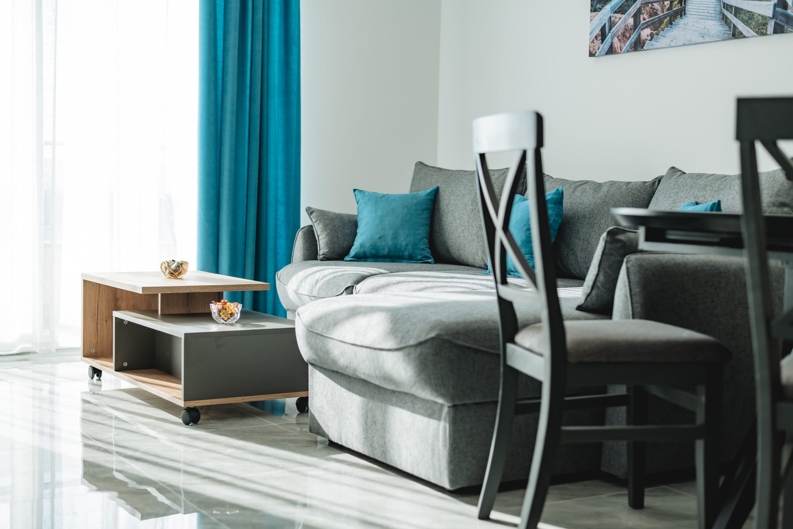 ✅ Salon – kanapa + wygodne rozkładane łóżko polowe