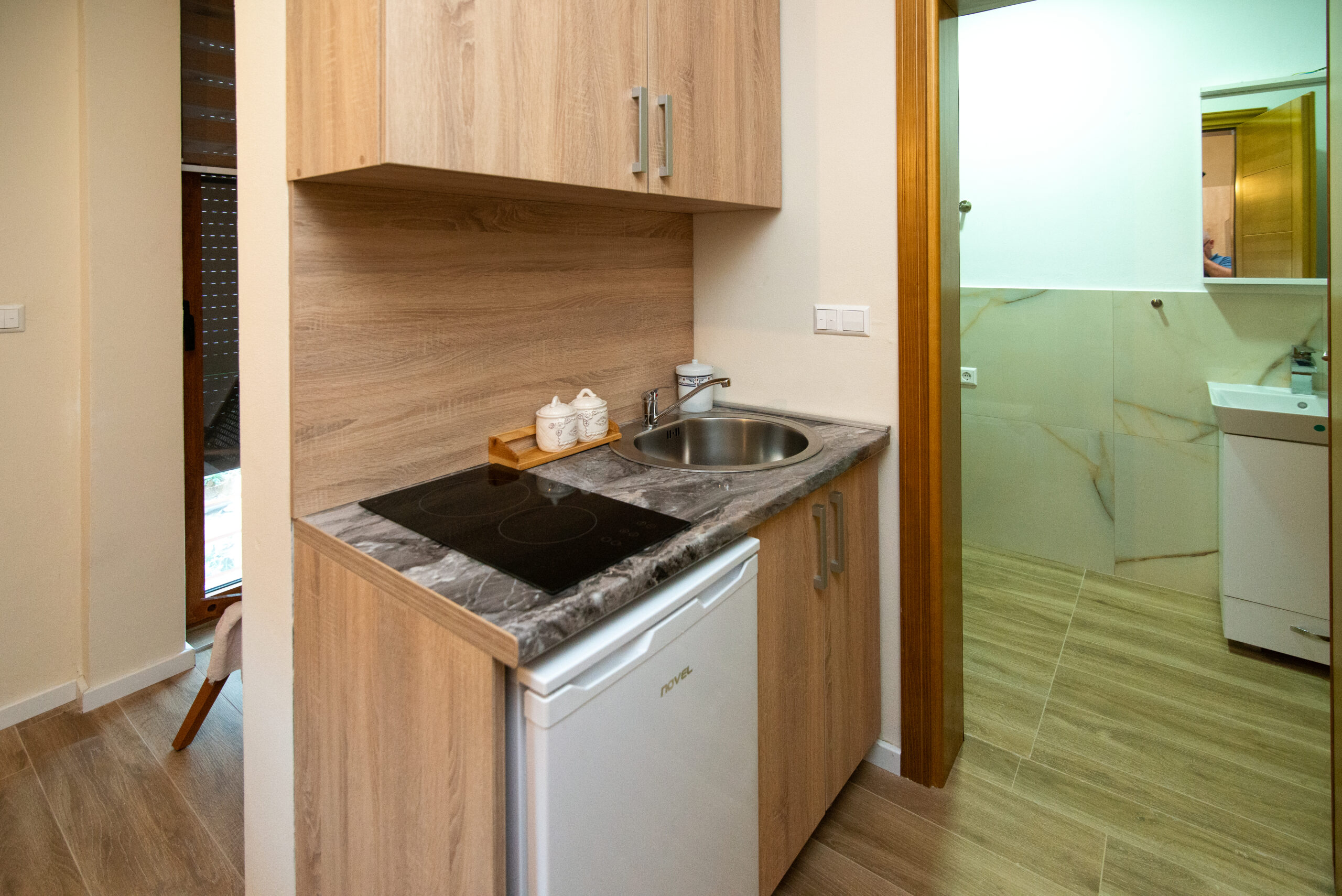 AP6 – Apartament Studio zlokalizowany na piętrze pierwszym z boku budynku. Apartament nie posiada balkonu i widoku na morze.